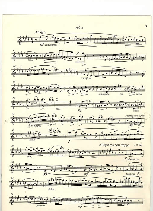 1904 erscheint die Flötensonate in cis-moll, op.64, die Louis Fleury gewidmet ist, dem berühmten Flötenlehrer am Conservatoire und Freund der Familie. Es ist ein groß angelegtes viersätziges Werk, ganz aus dem Charakter der Flöte, dem Instrument der Leichtigkeit und des Lichts, heraus empfunden, das selbst im flötenfreundlichen Frankreich ohne Beispiel ist. Sie ist mit ihrer poetischen Stimmung das französische Pendant zur "Undine"-Sonate Carl Reineckes, dem Musterbeispiel der deutschen Flötenromantik. Von den Spielern wird eine hohe Spielkultur und ein souveräner Umgang mit den Besonderheiten der spätromantisch-impressionistischen Klangwelt verlangt. Höhepunkt ist der langsame Satz mit einem tief empfundenen, wehmütigen Thema, und als Kontrast ein scherzoartiger Mittelteil, in dem sich das Hauptthema des langsamen Satzes durch jazzartig swingende Rhythmen in eine lebendige, tänzerische Variante verwandelt, die nach der Rückkehr zum ursprünglichen langsamen Tempo noch einige Male in der Klavierstimme auftaucht. Unverständlich, dass dieses Werk so lange unentdeckt geblieben ist, und es gehört nicht viel prophetische Gabe dazu vorherzusagen, dass diese Sonate sich das Repertoire der Kammermusikflötisten erobern wird.