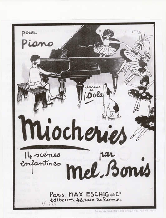 In der Entstehungszeit ihrer großen Kammermusikwerke hatte sich Mel Bonis noch tatkräftig und mit Erfolg um die Verbreitung ihrer Musik gekümmert. In ihrem letzten Lebensabschnitt fehlt ihr hingegen die Energie dazu – nur der musikalischen Förderung ihrer vielen Enkelkinder widmet sie sich noch mit Hingabe. So entstehen zahlreiche Stücke für Kinder - ihren Enkelkindern oft namentlich zugeeignet -, die auch Verleger finden. Zwei dieser Bände sind auch heute noch in den Originalausgaben erhältlich: